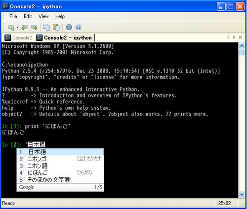 ConsoleはWindowsのコマンドプロンプトやCygwinなどのウィンドウをタブで管理してくれるソフトウェア。 便利なのでずっと使ってますが、日本語入力に対応してない問題がありました。 id:atsuoishimotoさんが先日、この問題に対応するパッチを公開してくれま…