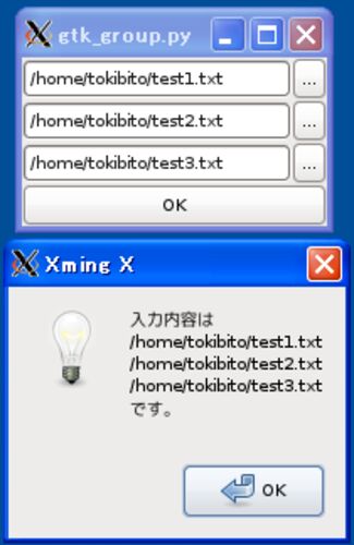 GUIアプリケーションでも再利用可能な部品を作ることは大切です。 PyGTKで複数のウィジェットを組み合わせて、再利用できるクラスを作ってみました。 FileReferenceは、テキストボックスとファイル参照ダイアログを組み合わせた部品です。 gtk_group.py # co…